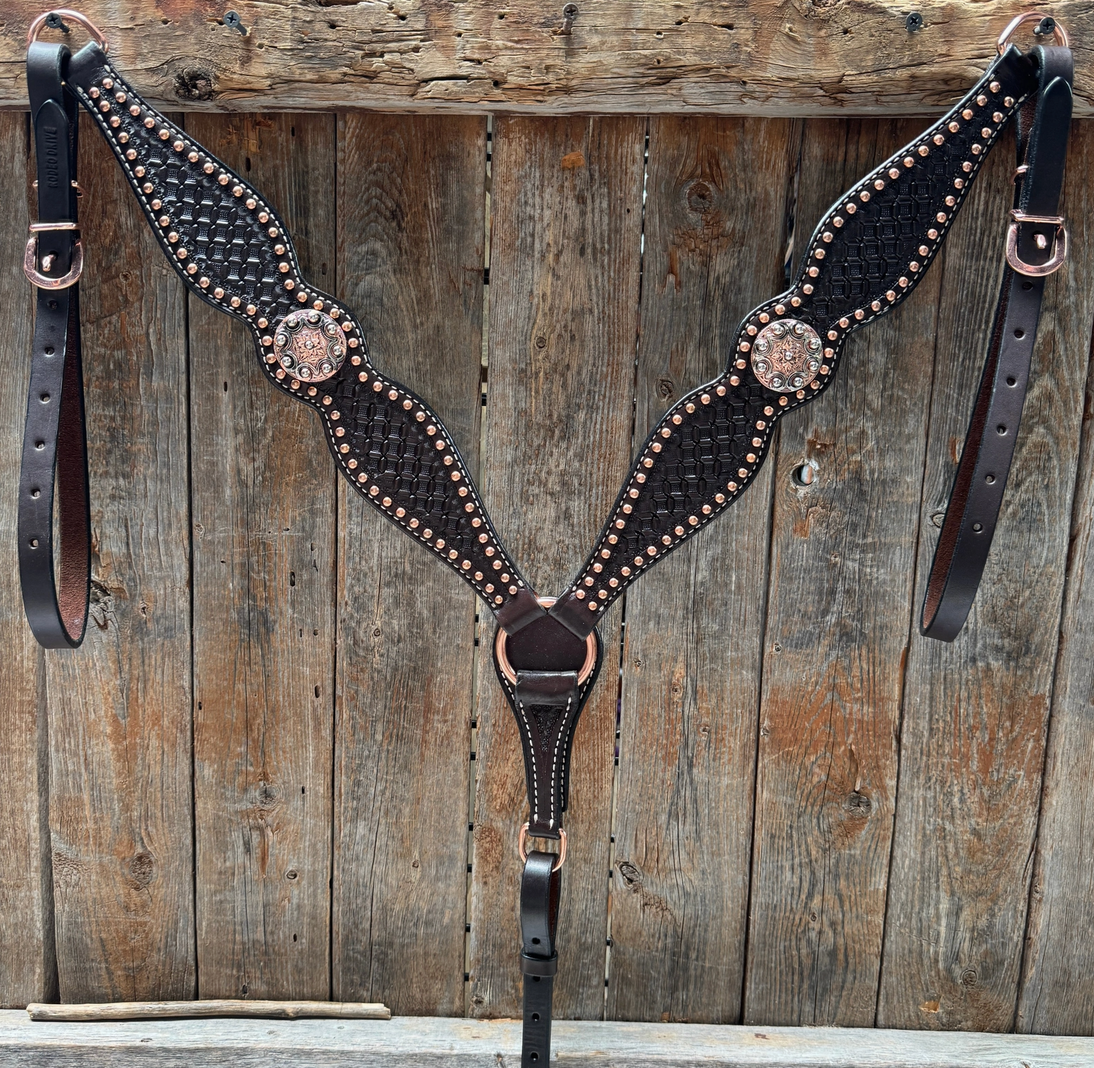 Dark Oil Copper Dot Headstall & Breastcollar Set – Western Concho & Buckle Design
